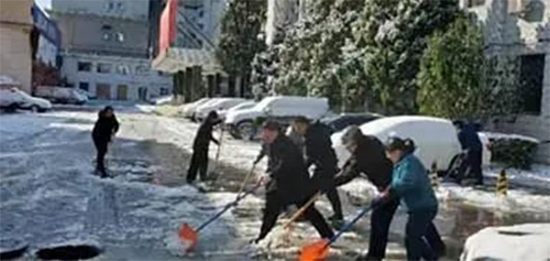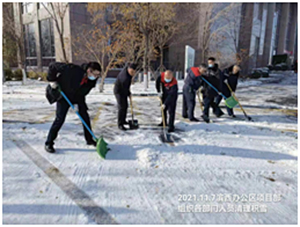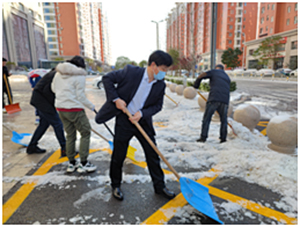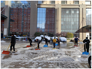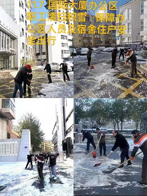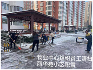 物業(yè)中心組織人員在所轄辦公區(qū)宿舍區(qū)掃雪除冰